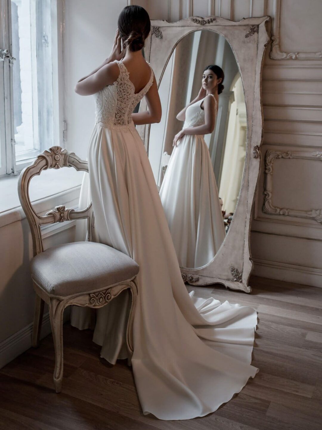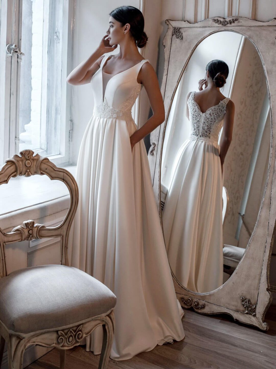 Αριστοκρατικό νυφικό σε άλφα γραμμή, με ανάγλυφα εντυπωσιακά στρας, πέρλες δαντέλα στο πίσω μέρος της πλάτης και μπροστά στην ζώνη, εντυπωσιακό μπούστο με διαφάνεια από τούλι. Ένα υπέροχο chic νυφικό ευρωπαϊκής προέλευσης ιδανικό για νύφες που αγαπούν το απλό και το διαφορετικό ταυτόχρονα! Πολλές νύφες μας, μας έχουν εμπιστευτεί και έχουν αγοράσει με τις συμβουλές μας το νυφικό τους online. Αν δεν είσαι σίγουρη για την εφαρμογή του μπορείς να κλείσεις ραντεβού για πρόβα στο info@missvanity.gr για να επισκεφτείς το φυσικό μας κατάστημα και κέρδισε 10% έκπτωση. Για οποιαδήποτε πληροφορία ή ραντεβού κάλεστε στο 22210 86623.