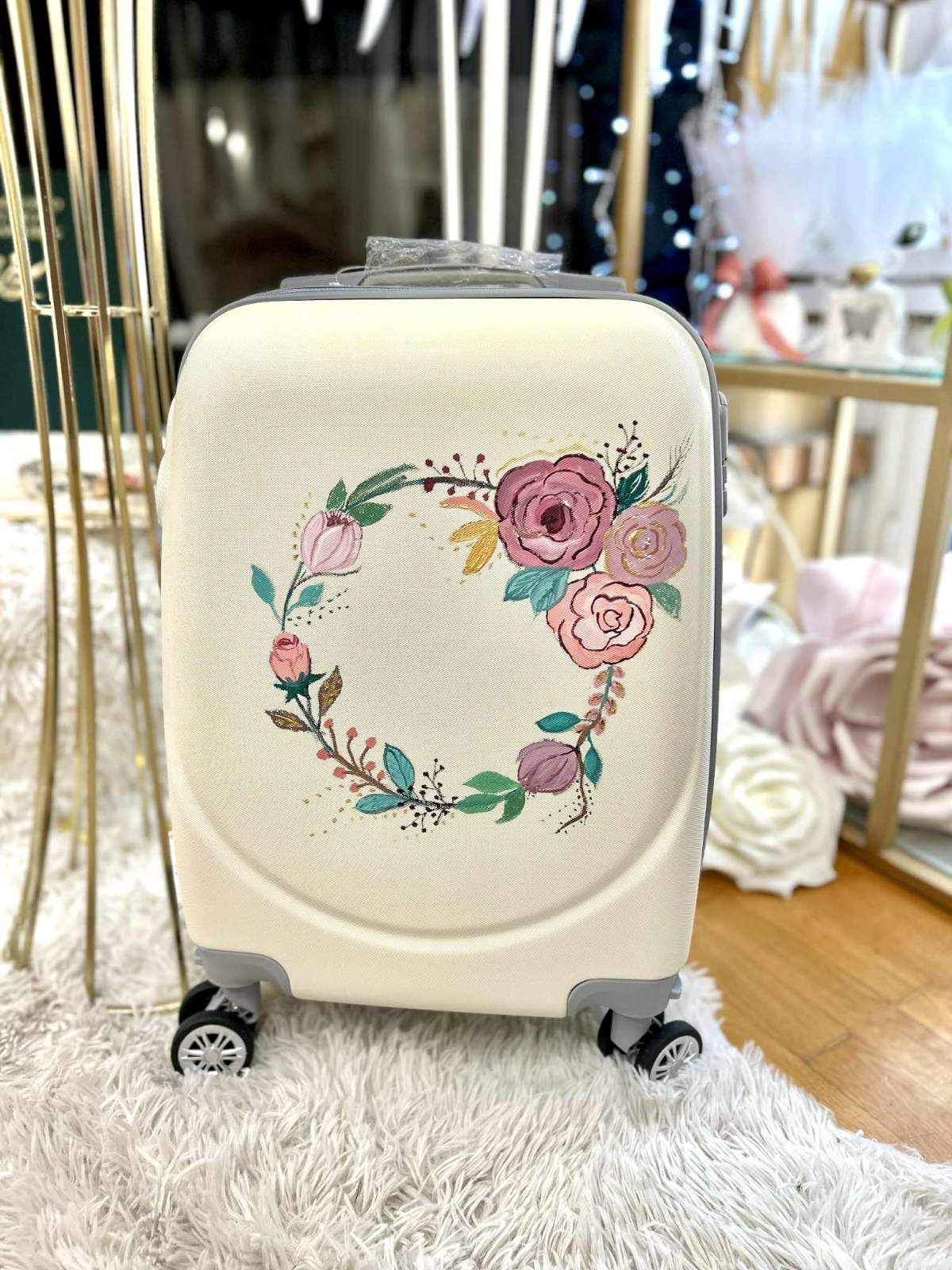 🎨Βαλίτσα Τρόλεϊ Ζωγραφισμένη στο χέρι με θέμα Στεφάνι με λουλούδια . Κάντε τη βάπτιση ή τη γιορτή του παιδιού σας αξέχαστη με μια μοναδική, χειροποίητη βαλίτσα τρόλεϊ ζωγραφισμένη στο χέρι!
