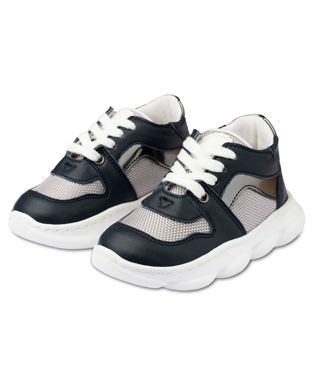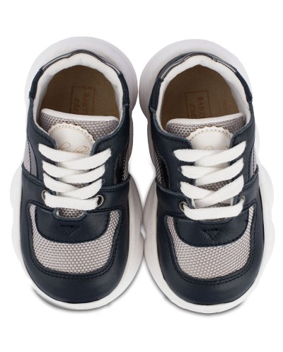 Βαπτιστικά παπούτσια δίχρωμα δετά sneakers ανατομικά από δέρμα και ύφασμα.