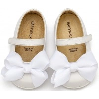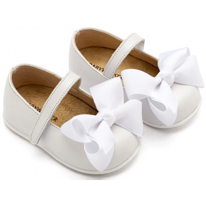 Βαπτιστικά παπούτσια Δερμάτινο γοβάκι μονή μπαρέτα με φιόγκο gros-grain από δέρμα νάπα, σε λευκό χρώμα.
