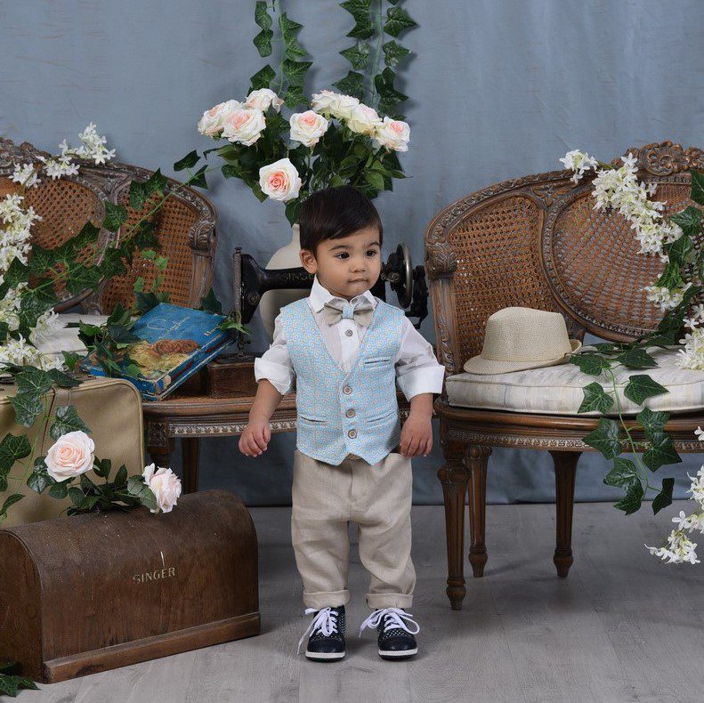 Βαπτιστικό κοστούμι σε γαλάζιο με μπεζ, με γιλέκο, εκρού πουκάμισο, ζώνη και ξύλινο παπιγιόν. Σε περίπτωση έλλειψης αποθέματος απαιτούνται έως 15 εργάσιμες για την παραγωγή του. Διαθέσιμο και για ηλικίες 3-5 με 30€ επιβάρυνση. Γράψτε μας στα σχόλια της παραγγελίας σας το νούμερο-ηλικία του παιδιού και προσθέστε στο καλάθι σας και το επιπλέον κόστος από εδώ