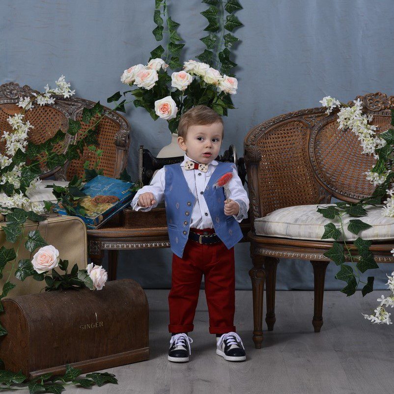 Βαπτιστικό κοστούμι σε γαλάζιο με μπορντό, με γιλέκο, εκρού πουκάμισο, ζώνη και ξύλινο παπιγιόν. Σε περίπτωση έλλειψης αποθέματος απαιτούνται έως 15 εργάσιμες για την παραγωγή του. Διαθέσιμο και για ηλικίες 3-5 με 30€ επιβάρυνση. Γράψτε μας στα σχόλια της παραγγελίας σας το νούμερο-ηλικία του παιδιού και προσθέστε στο καλάθι σας και το επιπλέον κόστος από εδώ