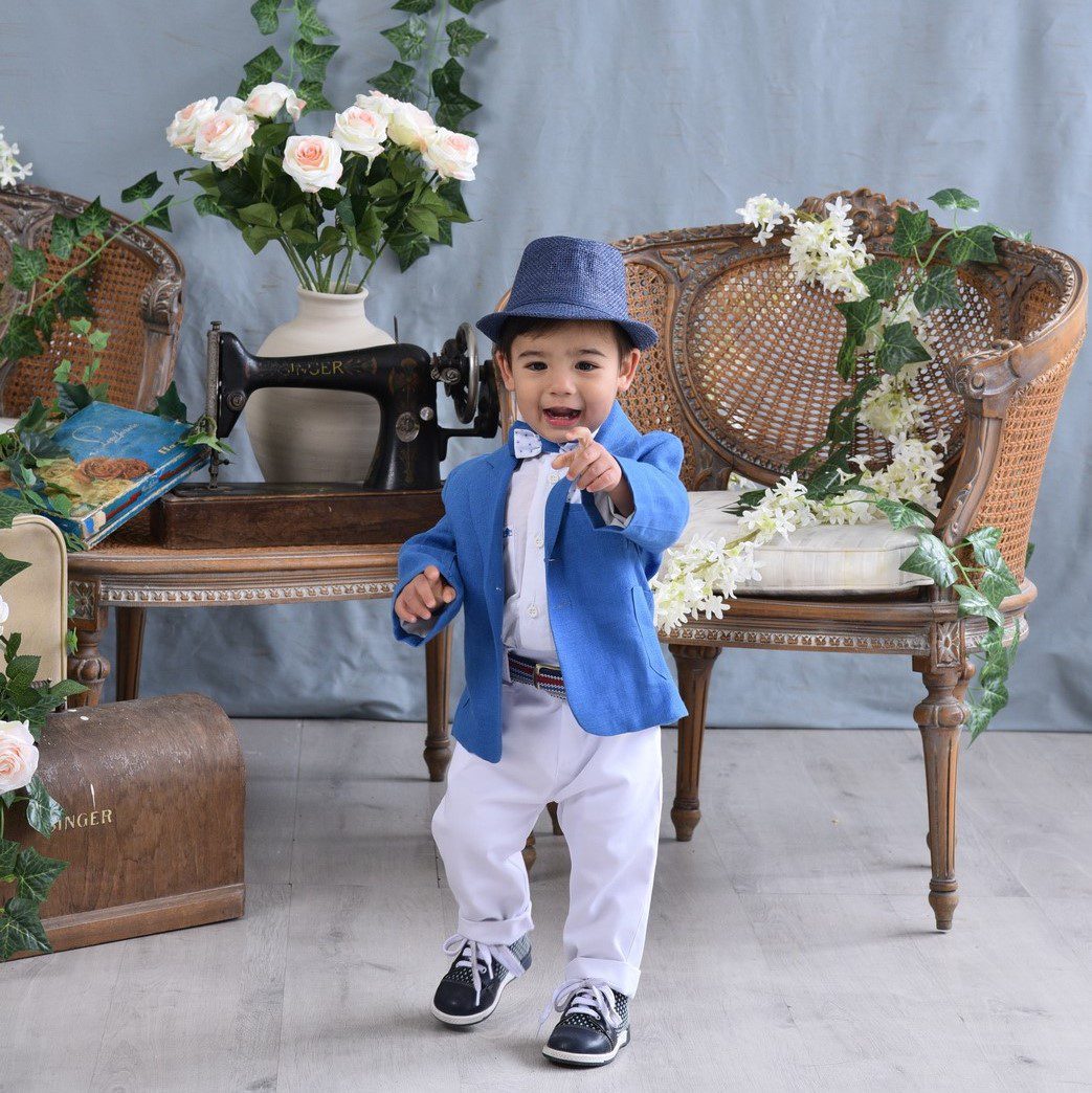 Βαπτιστικό κοστούμι σε λευκό με γαλάζιο, με σακάκι, εκρού πουκάμισο, ζώνη και ξύλινο παπιγιόν. Σε περίπτωση έλλειψης αποθέματος απαιτούνται έως 15 εργάσιμες για την παραγωγή του. Διαθέσιμο και για ηλικίες 3-5 με 30€ επιβάρυνση. Γράψτε μας στα σχόλια της παραγγελίας σας το νούμερο-ηλικία του παιδιού και προσθέστε στο καλάθι σας και το επιπλέον κόστος από εδώ
