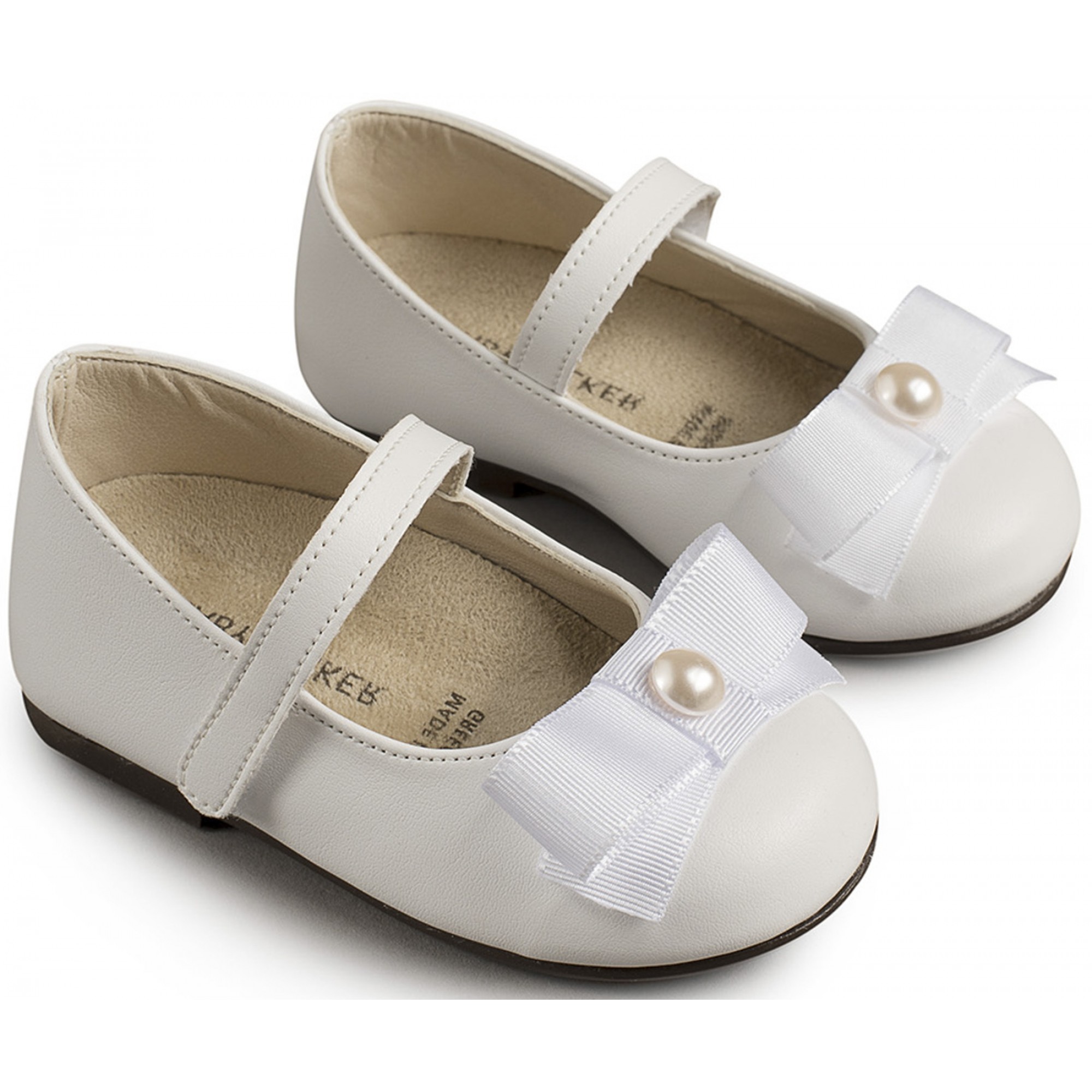 Βαπτιστικό παπούτσι μπαρέτασε εκρού χρώμα και φιόγκο.Με δερμάτινο ανατομικό πάτο για ξεκούραστο περπάτημα, κατάλληλο για τα πρώτα βήματα του παιδιού. Ελληνικής ραφής