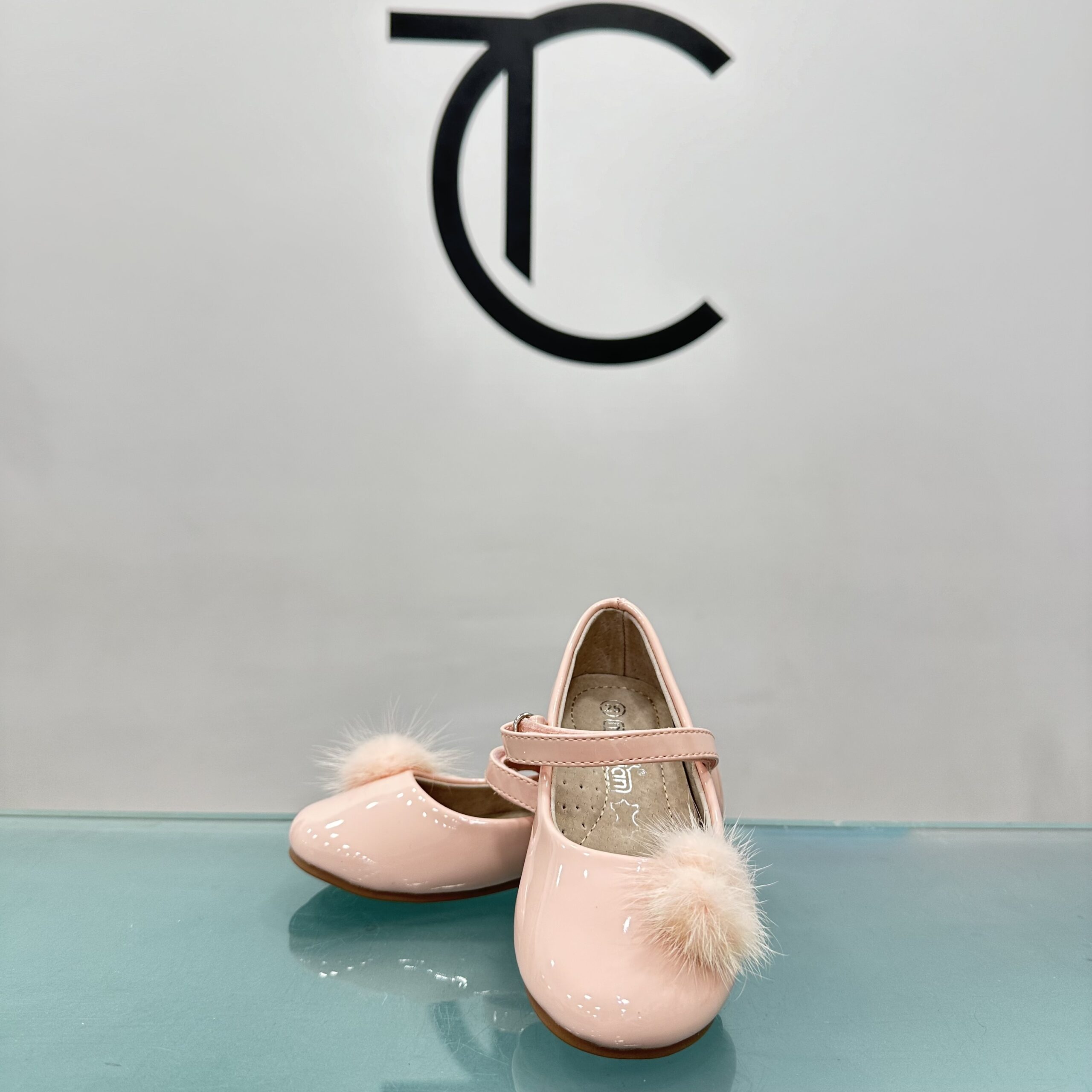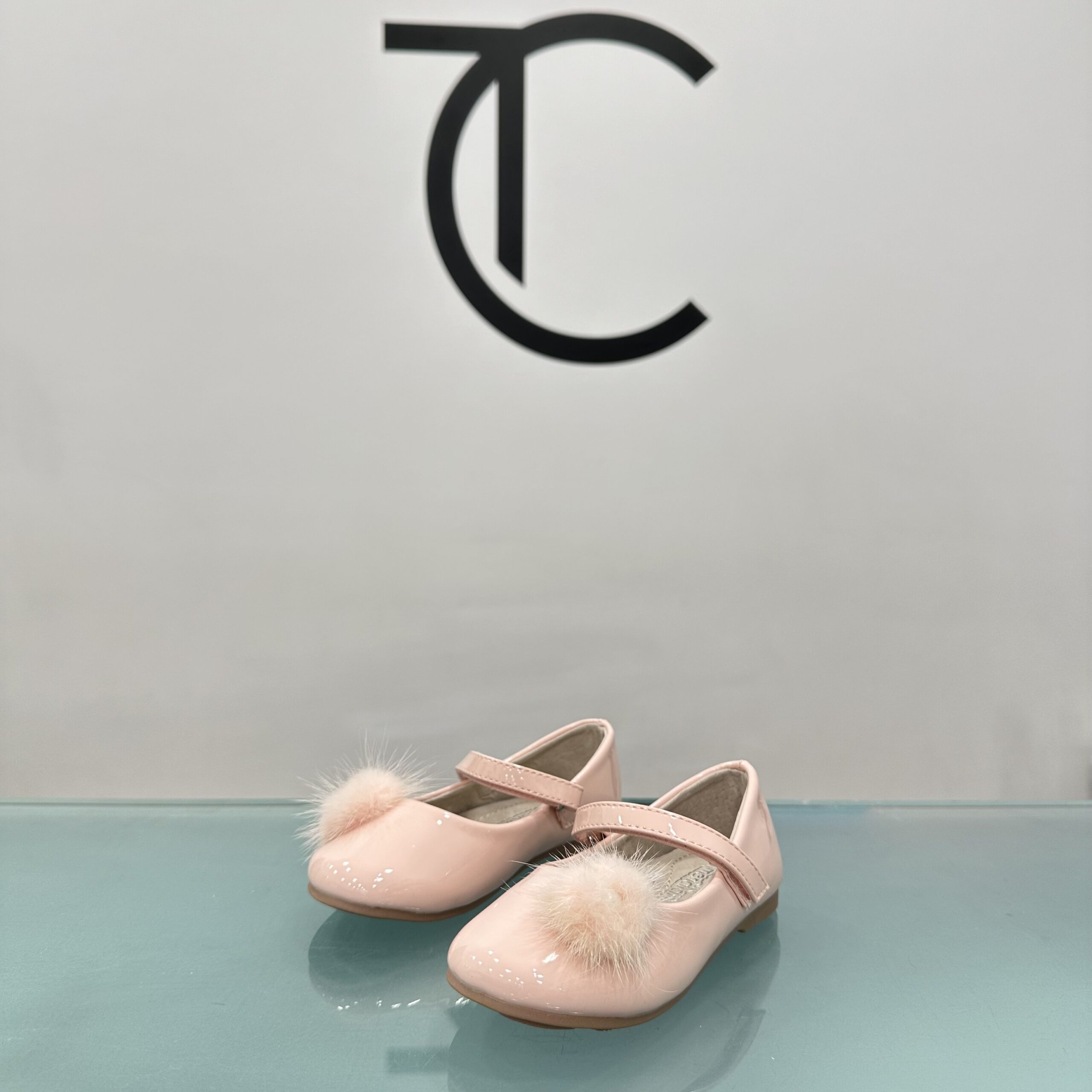 Βαπτιστικό παπούτσι μπαρέτα σε ροζ χρώμα. Διακοσμημένο με ροζ φουντίτσα. Με δερμάτινο ανατομικό πάτο για ξεκούραστο περπάτημα, κατάλληλο για τα πρώτα βήματα του παιδιού. Ελληνικής ραφής