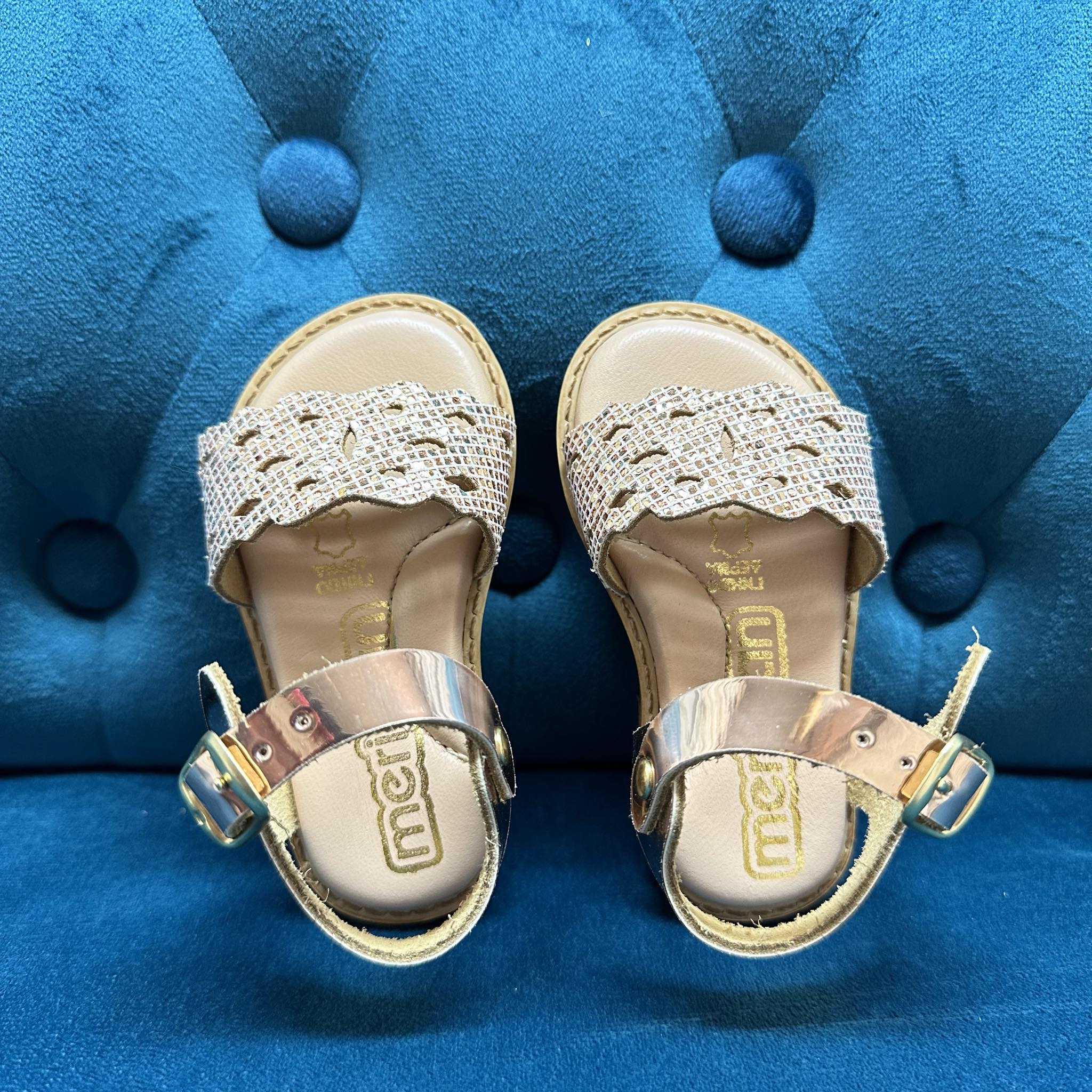 Βαπτιστικό παπούτσι πεδιλάκι ιριδίζον. Με δερμάτινο ανατομικό πάτο για ξεκούραστο περπάτημα, κατάλληλο για τα πρώτα βήματα του παιδιού. Ελληνικής ραφής