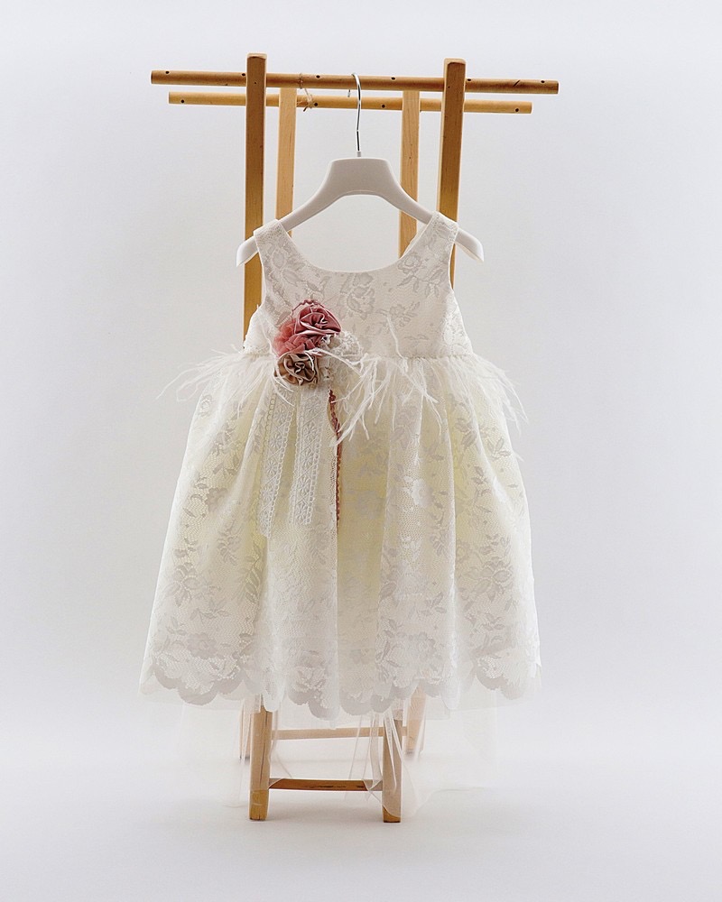 Βαπτιστικό φόρεμα διακοσμημένο με λουλούδια και φτερά. Καλύπτει έως 24 μηνών.