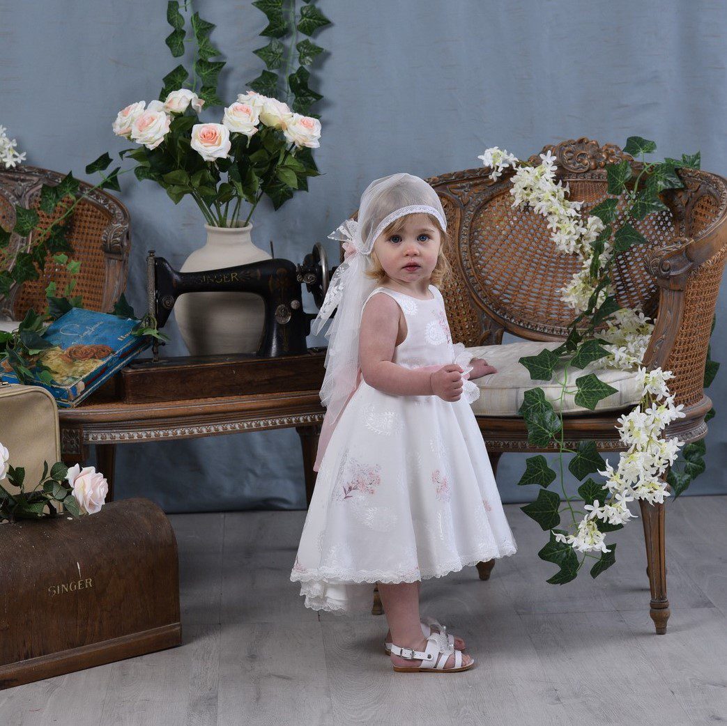 Βαπτιστικό φόρεμα με ουρά σε άσπρο, με σχέδια. Συνοδεύεται από τούλινη μπαντάνα για τα μαλλιά. Σε περίπτωση έλλειψης αποθέματος απαιτούνται έως 15 εργάσιμες για την παραγωγή του. Διαθέσιμο και για ηλικίες 3-5 με 30€ επιβάρυνση. Γράψτε μας στα σχόλια της παραγγελίας σας το νούμερο-ηλικία του παιδιού και προσθέστε στο καλάθι σας και το επιπλέον κόστος από εδώ