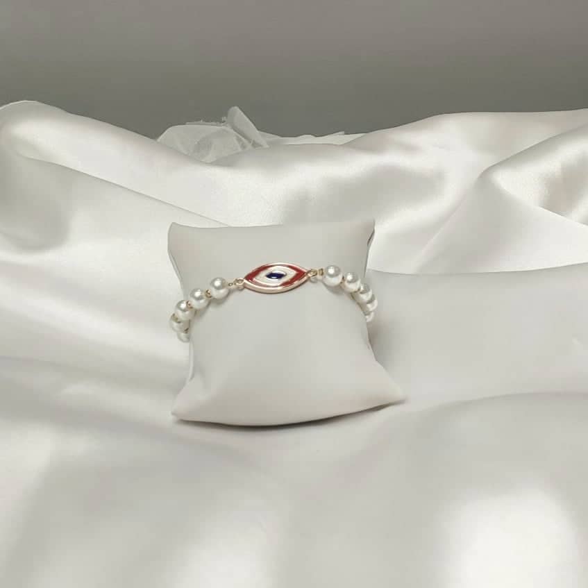 Βραχιόλι με μαργαριτάρια και μάτι με σμάλτο