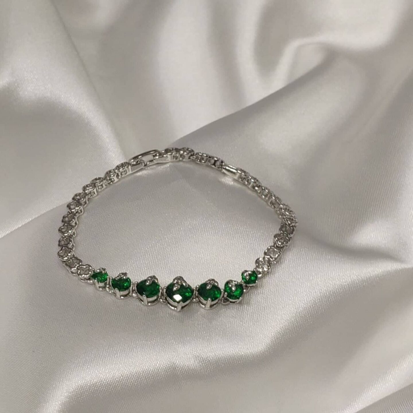 Βραχιόλι σε ασήμι 925 με σμαραγδί ημιπολύτιμους λίθους