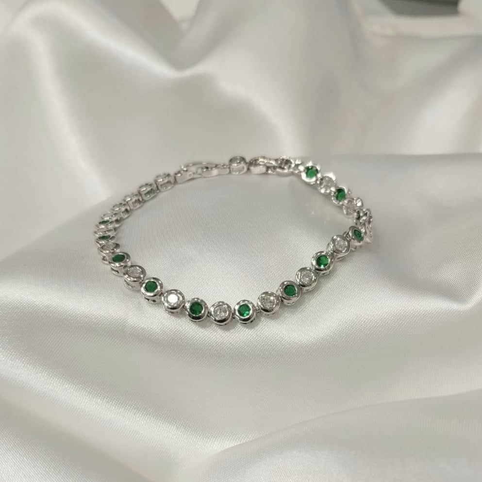 Βραχιόλι σε ασήμι 925 με σμαραγδί ημιπολύτιμους λίθους και swarovski