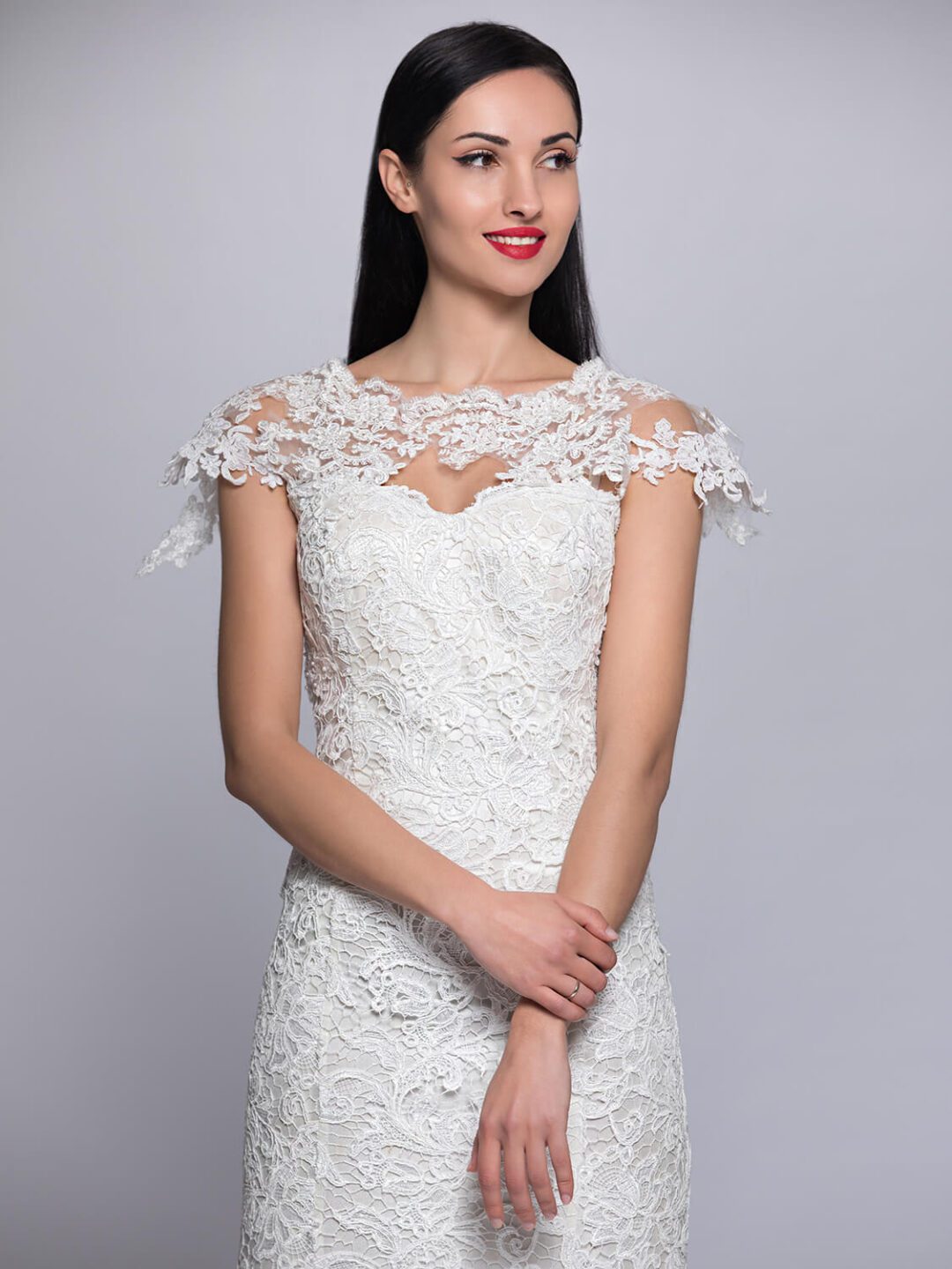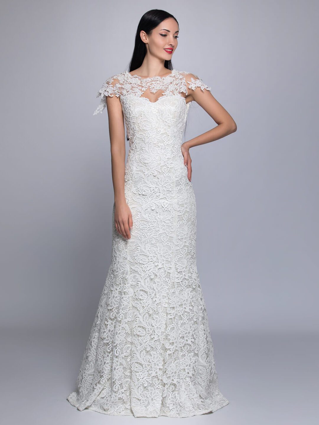 Γοργονέ νυφικό από γαλλική βαμβακερή ανάγλυφη δαντέλα με εκπληκτική εφαρμογή, περίτεχνο δέσιμο στο μπούστο από απλικαρισμένη δαντέλα που καταλήγει σε λοξό γαλλικό μανίκι, πολύ εντυπωσιακή πλάτη από βαθύ V τελείωμα και διακριτική ουρά κεντημένη στο τελείωμα της. Ένα καταπληκτικό νυφικό ευρωπαϊκής κατασκεύης ιδανικό για νύφες που του αρέσει το κλασικό και το μοντέρνο ταυτόχρονα! Πολλές νύφες μας μας έχουν εμπιστευτεί και έχουν αγοράσει με τις συμβουλές μας το νυφικό τους online. Αν δεν είσαι σίγουρη για την εφαργαγή του μπορείς να κλείσεις ραντεβού για πρόβα στο info@missvanity.gr για να επισκεφτείς το φυσικό μας κατάστημα και κέρδισε 10% έκπτωση.