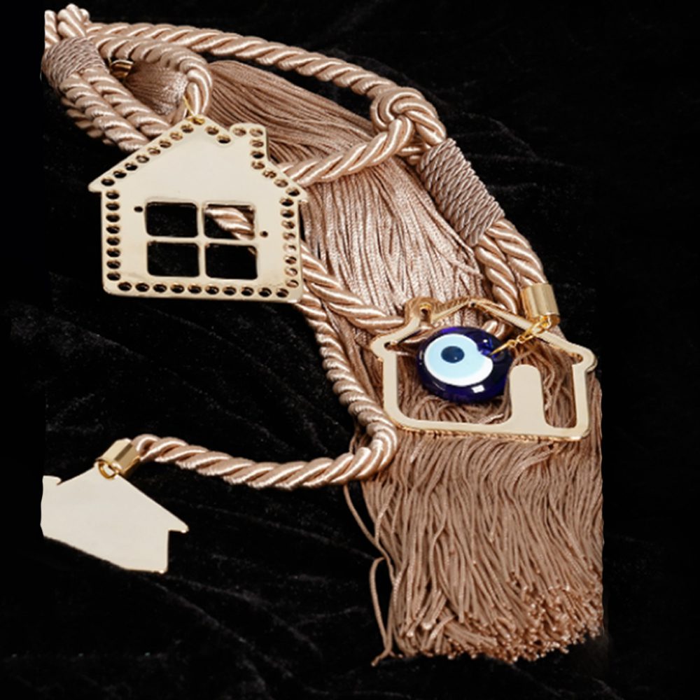 Γούρι 2022 με 3 σπιτάκια και μάτι, διακοσμητικά στοιχεία επιχρυσωμένα με 24 καράτια , με σατέν κορδόνι και μεταξωτή φούντα. Μήκος 50εκ. Ένα πολυτελές γούρι, ιδανικό δώρο για το σπίτι ή το γραφείο. Ένα υπέροχο γιορτινό δώρο για τα αγαπημένα μας πρόσωπα!