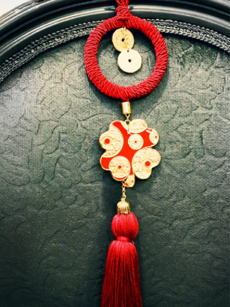 Γούρι 2022 με τυχερό τριφύλλι και λίρες, διακοσμητικά στοιχεία επιχρυσωμένα με 24 καράτια , με σατέν κορδόνι και μεταξωτή φούντα. Μήκος 45εκ. Ένα πολυτελές γούρι, ιδανικό δώρο για το σπίτι ή το γραφείο. Ένα υπέροχο γιορτινό δώρο για τα αγαπημένα μας πρόσωπα!