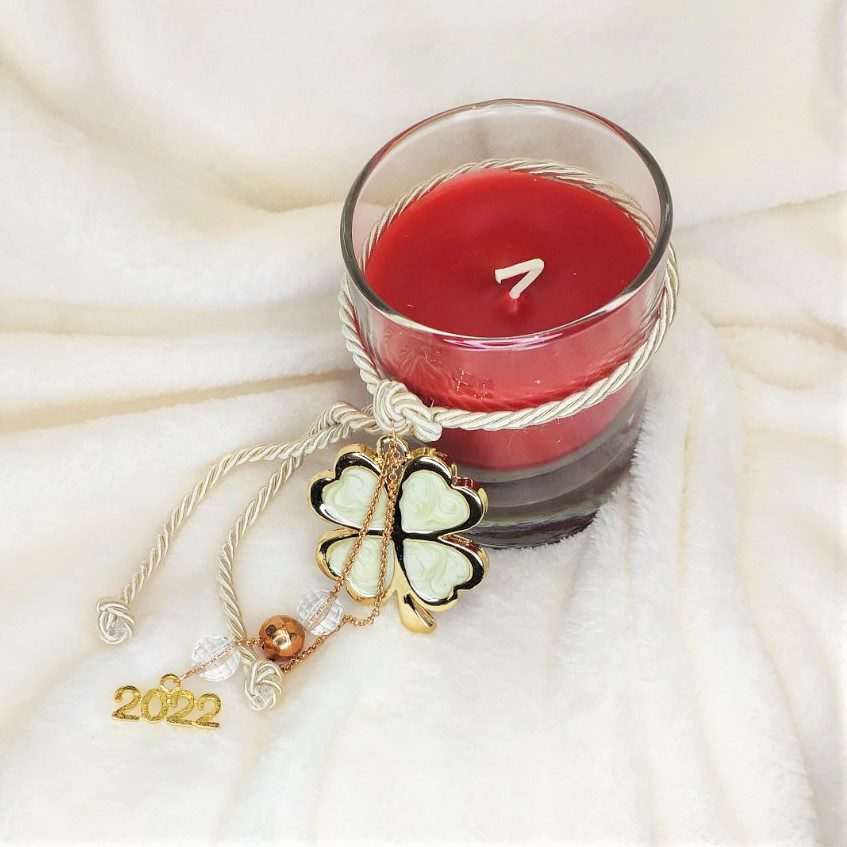 Γούρι 2022 κερί κανέλα με τριφύλλι, με σατέν κορδόνι και μεταξωτή φούντα. Ύψος 1εκ. Ένα πολυτελές γούρι, ιδανικό δώρο για το σπίτι ή το γραφείο. Ένα υπέροχο γιορτινό δώρο για τα αγαπημένα μας πρόσωπα!