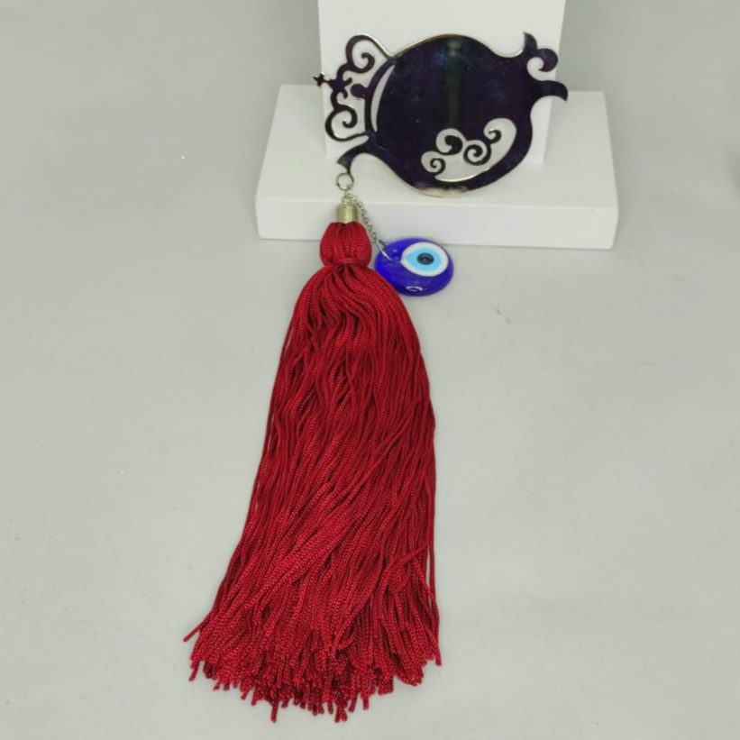 Γούρι 2022 με διάτρητο ρόδι, διακοσμητικά στοιχεία επιχρυσωμένα με 24 καράτια , με σατέν κορδόνι και μεταξωτή φούντα. Μήκος 32. Ένα πολυτελές γούρι, ιδανικό δώρο για το σπίτι ή το γραφείο