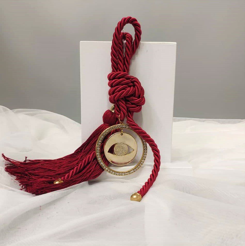 Γούρι 2023 με μεγάλο μάτι και ζιργκόν, διακοσμητικά στοιχεία επιχρυσωμένα με 24 καράτια , με σατέν κορδόνι και μεταξωτή φούντα. Μήκος 36 εκ. Ένα πολυτελές γούρι, ιδανικό δώρο για το σπίτι ή το γραφείο