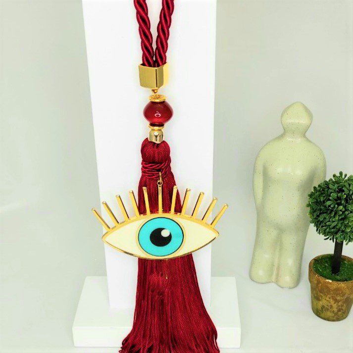 Γούρι 2022 με μεγάλο μάτι, διακοσμητικά στοιχεία επιχρυσωμένα με 24 καράτια , με σατέν κορδόνι και μεταξωτή φούντα. Μήκος 36 εκ. Ένα πολυτελές γούρι, ιδανικό δώρο για το σπίτι ή το γραφείο