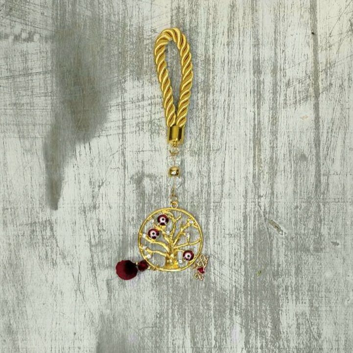 Γούρι 2022 με το δέντρο της ζωής, επιχρυσωμένο, διακοσμημένο με σατέν κορδόνι και κορδέλες με ευχές. Ιδανικό δώρο για το σπίτι ή το γραφείο