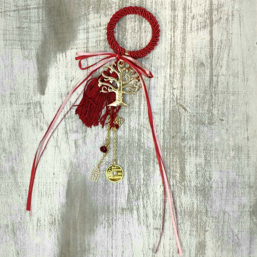 Γούρι 2022 με το δέντρο της ζωής, επιχρυσωμένο, διακοσμημένο με μεταξωτή φούστα και σατέν κορδόνι. Ιδανικό δώρο για το σπίτι ή το γραφείο