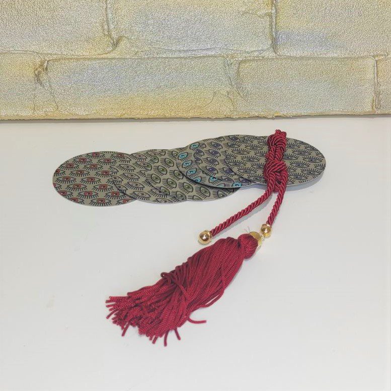 Γούρι 2023 σουβέρ με ματάκια, διακοσμητικά στοιχεία επιχρυσωμένα με 24 καράτια , με σατέν κορδόνι και μεταξωτή φούντα. Μήκος 33 εκ. Ένα πολυτελές γούρι, ιδανικό δώρο για το σπίτι ή το γραφείο