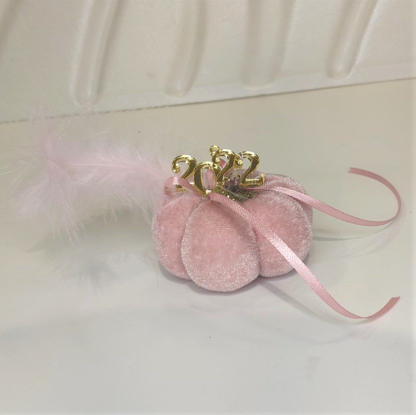 Γούρι 2022 μικρή βελούδινη κολοκύθα, διακοσμημένο με μεταξωτό κορδόνι και/ή φούντα. Ιδανικό δώρο για το σπίτι ή το γραφείο