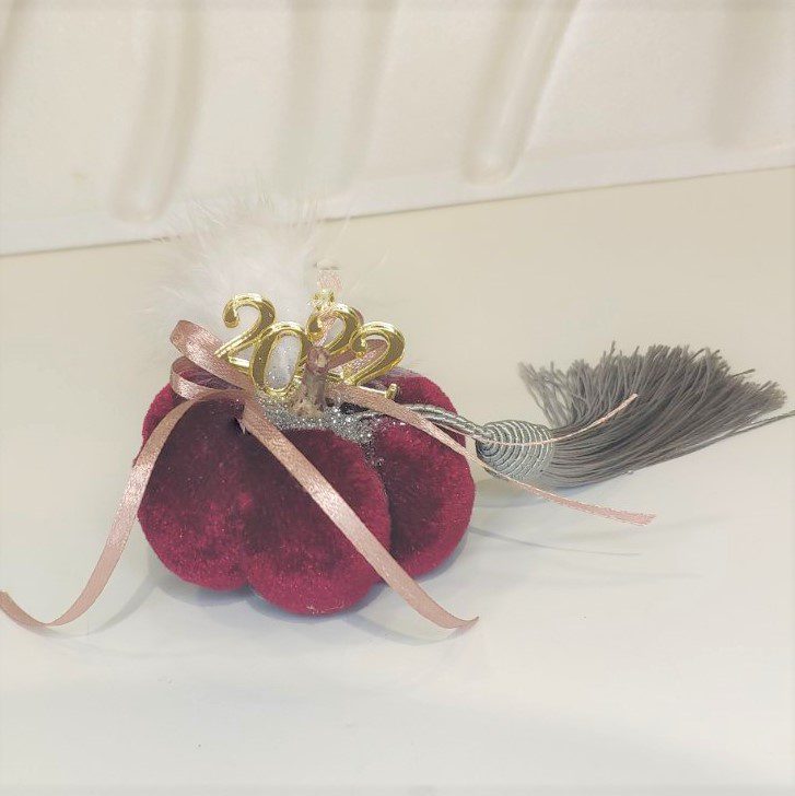 Γούρι 2022 μικρή βελούδινη κολοκύθα, διακοσμημένο με μεταξωτό κορδόνι και/ή φούντα. Ιδανικό δώρο για το σπίτι ή το γραφείο