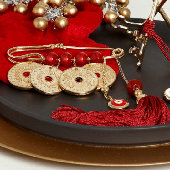 Γούρι 2022 παραμάνα με τυχερές δεκάρες , διακοσμητικά στοιχεία επιχρυσωμένα με 24 καράτια , με σατέν κορδόνι και μεταξωτή φούντα. Μήκος 12εκ. Ένα πολυτελές γούρι, ιδανικό δώρο για το σπίτι ή το γραφείο. Ένα υπέροχο γιορτινό δώρο για τα αγαπημένα μας πρόσωπα!