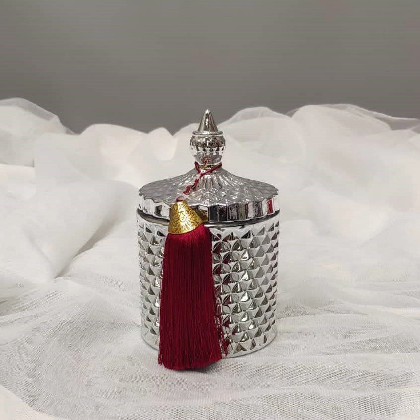 Γούρι 2023 θήκη κεριού με καπάκι και μεταξωτή φούντα σε κόκκινο . 14×12 εκ. Ένα πολυτελές γούρι, ιδανικό δώρο για το σπίτι ή το γραφείο