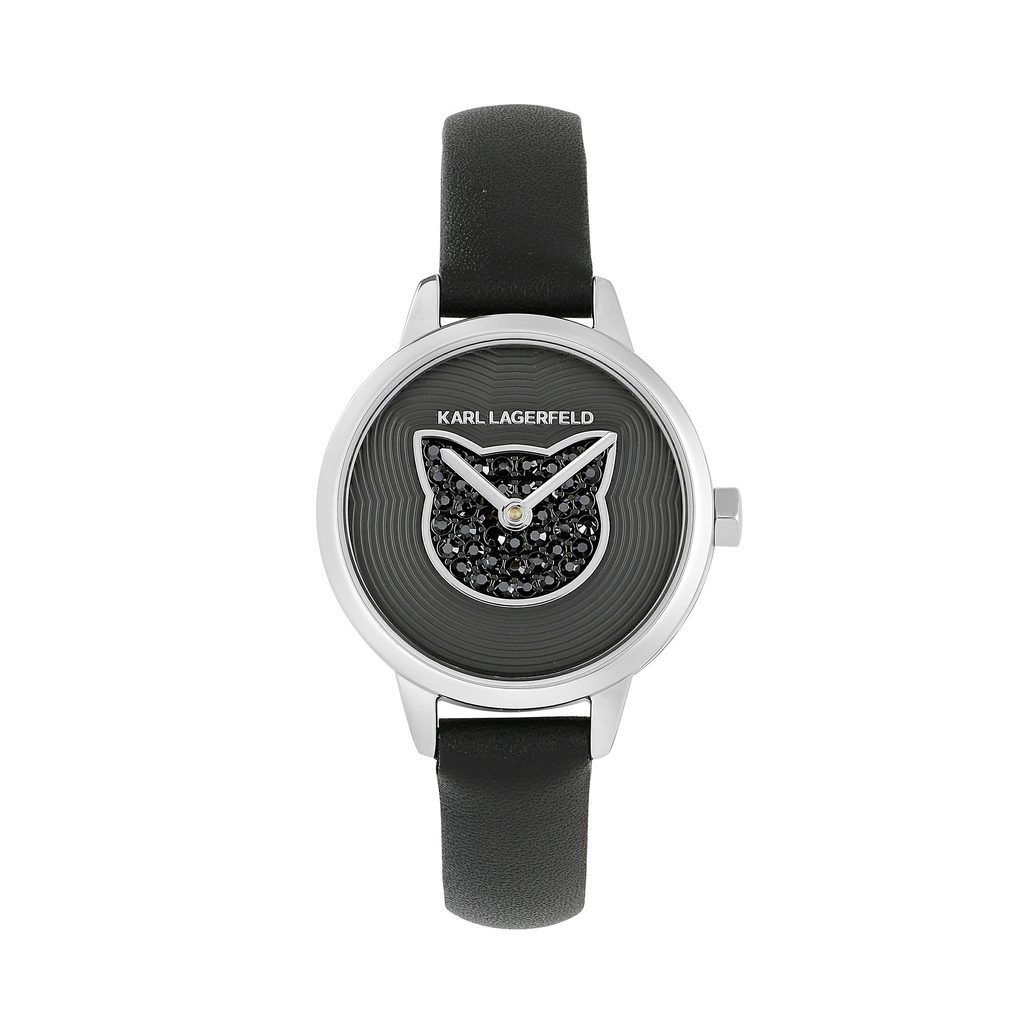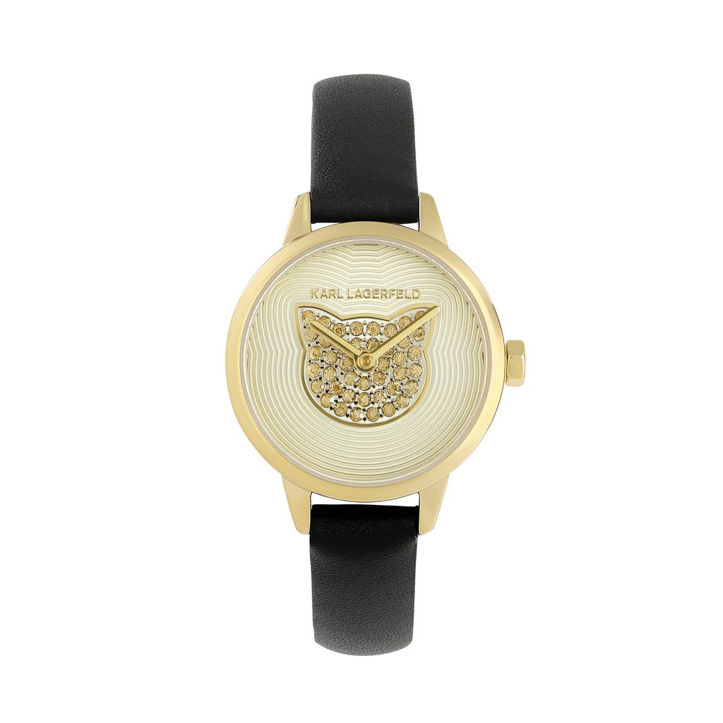 Γυναικείο ρολόι του οίκου Karl Lagerfeld, με καντράν διακοσμημένο με κρύσταλλα swarovski και γατούλα. Μηχανισμός Quartz με 2 χρόνια εργοστασιακής εγγύησης. Με δερμάτινο λουράκι, κατασκευασμένο όλο από ανοξείδωτο ατσάλι, επιχρυσωμένο με 24 καράτια για το χρυσό και το ροζ χρυσό. Διάμετρος καντράν 26mm, στεγανότητα 3 ΑΤΜ. Παραδίδεται στην γνήσια συσκευασία του με πιστοποιητικό γνησιότητας και εξουσιοδοτημένο service.