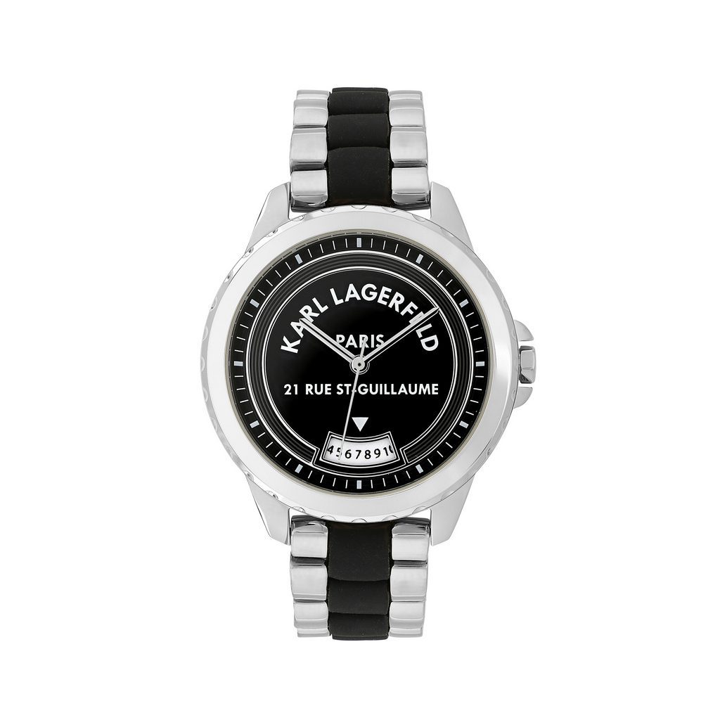 Γυναικείο ρολόι του οίκου Karl Lagerfeld, με καντράν διακοσμημένο με τα στοιχεία του οίκου. Μηχανισμός Quartz με 2 χρόνια εργοστασιακής εγγύησης. Με μπρασελέ και σιλικόνη, κατασκευασμένο όλο από ανοξείδωτο ατσάλι, επιχρυσωμένο με 24 καράτια για το χρυσό και το ροζ χρυσό. Διάμετρος καντράν 36mm, στεγανότητα 3 ΑΤΜ. Παραδίδεται στην γνήσια συσκευασία του με πιστοποιητικό γνησιότητας και εξουσιοδοτημένο service.