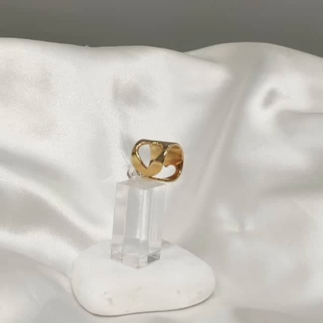 Δαχτυλίδι με διάτρητες καρδούλες επιχρυσωμένο με 24 καράτια