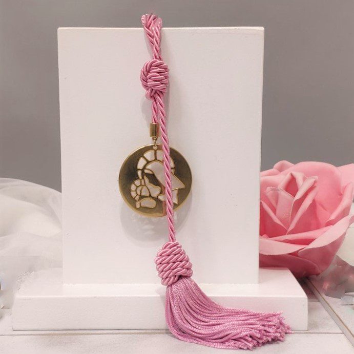 Δώρο γέννησης/βάπτισης κορίτσι επιχρυσωμένο με 24 καράτια , με την Παναγία, διακοσμημένο με επιχρυσωμένη αλυσίδα με ματάκι με σμάλτο, ημιπολύτιμους λίθους και ροζ μεταξωτή φούντα. Ξεχωριστό δώρο για νεογέννητα ή νεοφώτιστα παιδιά! Συνολικό μήκος 28 εκ. Οι χειροποίητες δημιουργίες του Tresento είναι επιχρυσωμένες με 24 καράτια και διακοσμημένα με ημιπολύτιμους λίθους και σμάλτο. Ενδέχεται να χρειαστούν έως 15 εργάσιμες μέρες για την κατασκευή τους. Ελληνικής κατασκευής.