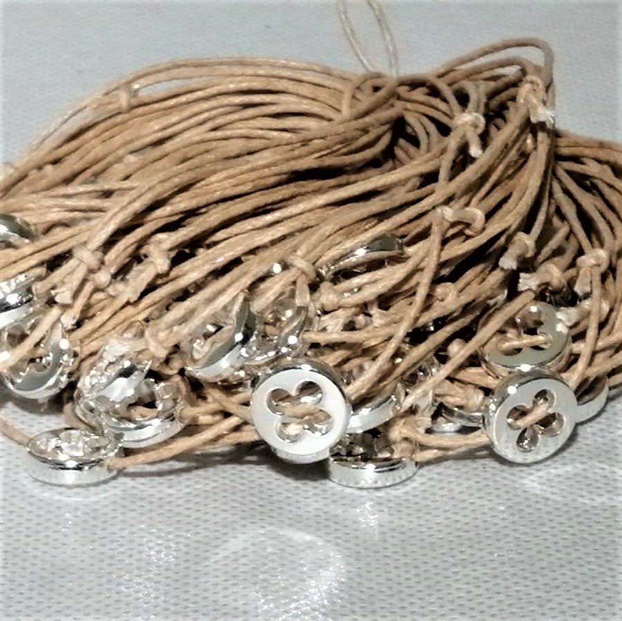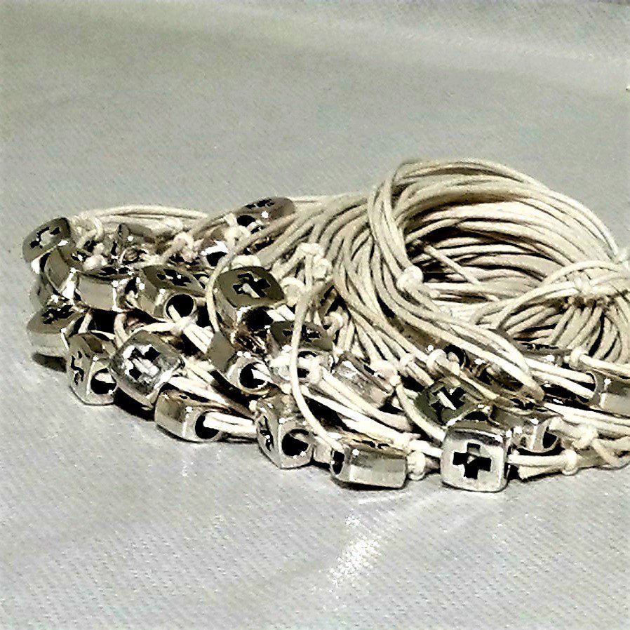 Μαρτυρικά βραχιολάκια για βάπτιση με μεταλλική χάντρα και διάτρητο σταυρουδάκι. Η επιλογή χρώματος στο κορδονάκι και τις χάντρες είναι δική σας. Το κουτί περιλαμβάνει 50 τεμάχια. Είναι χειροποίητα και η παράδοση τους γίνεται σε 10-12 ημέρες.
