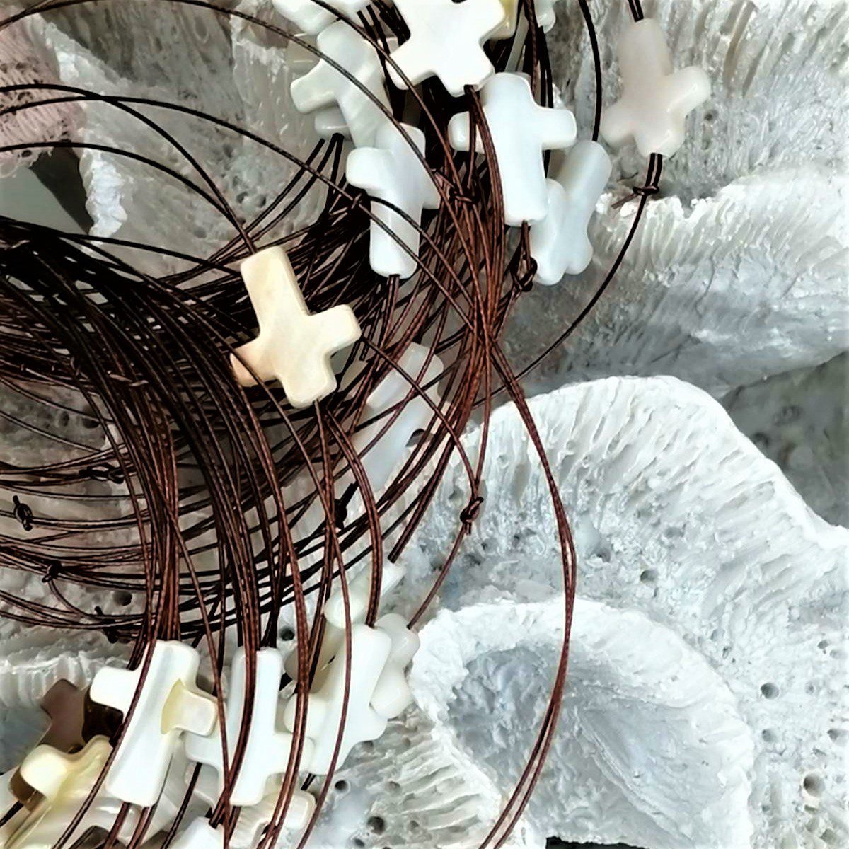 Μαρτυρικά βραχιολάκια για βάπτιση με σταυρό από φίλντισι και κορδόνι μπισινέλα. Η επιλογή χρώματος στο κορδονάκι και τις χάντρες είναι δική σας. Το κουτί περιλαμβάνει 50 τεμάχια.