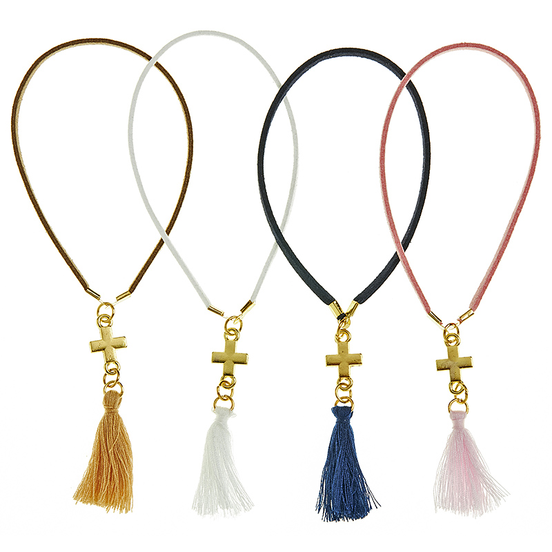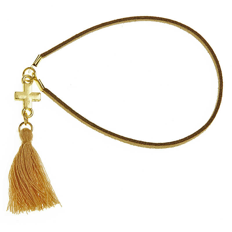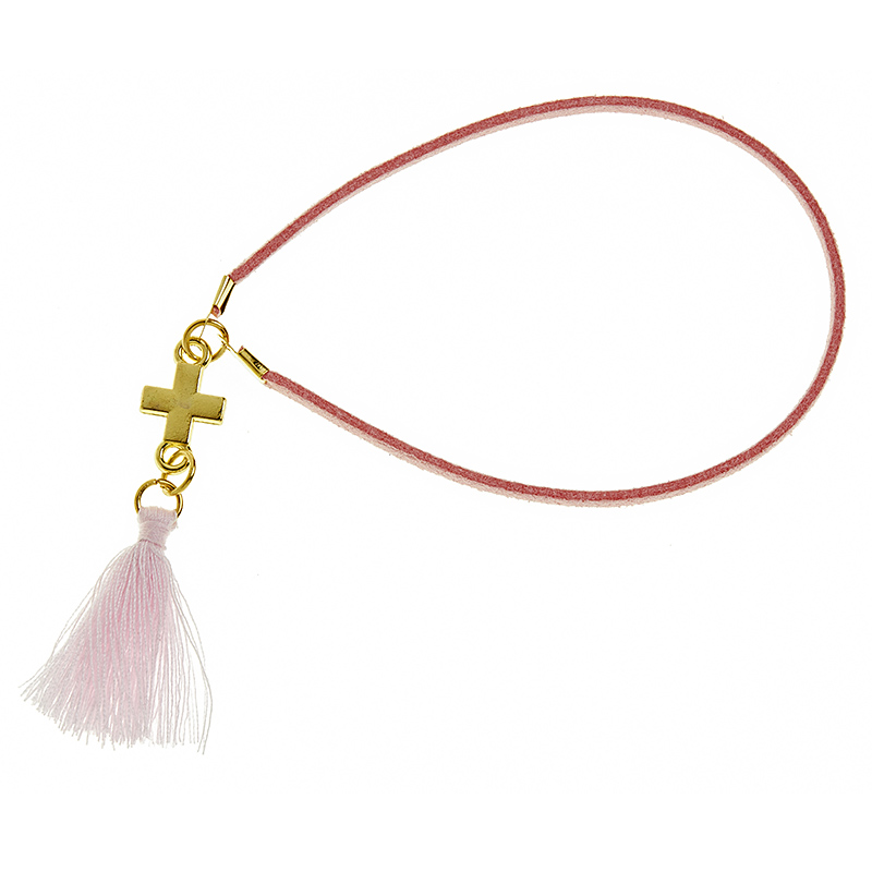 Μαρτυρικά βραχιολάκια για βάπτιση σε δερματάκι. Περιλαμβάνει χρυσό σταυρό και φούντα.