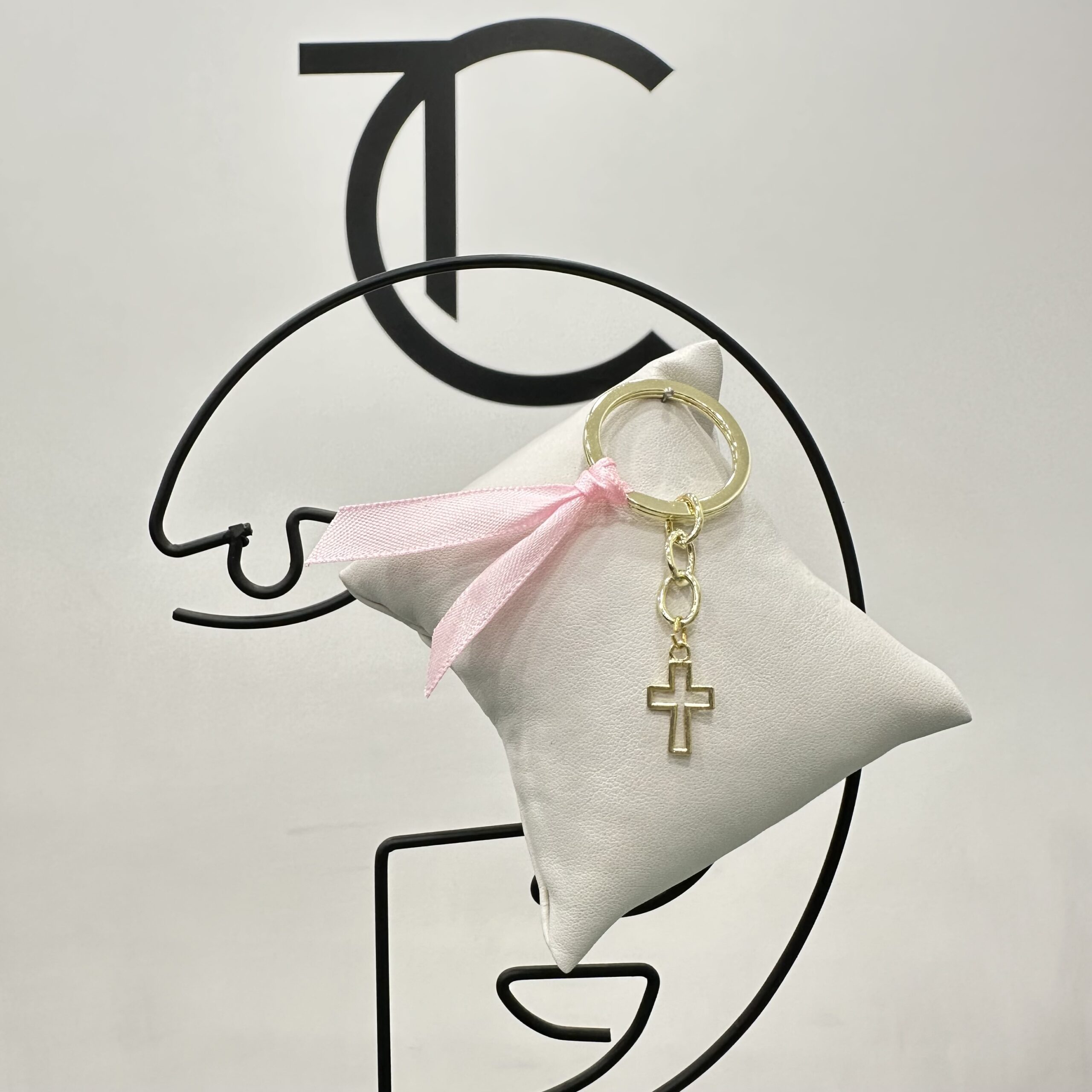 Μαρτυρικά για βάπτιση χρυσό μπρελόκ με σταυρό. Η επιλογή χρώματος στην κορδέλα είναι δική σας. Το κουτί περιλαμβάνει 50 τεμάχια.