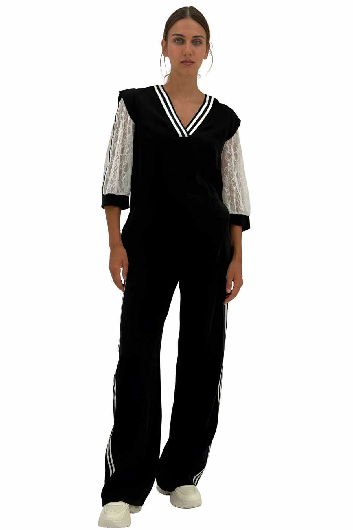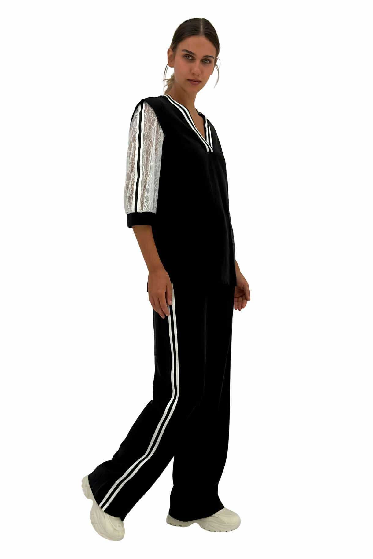 Μαύρο γυναικείο παντελόνι με άσπρη ρίγα στο πλάι και λάστιχο στην μέση . Ελληνικής κατασκευής.