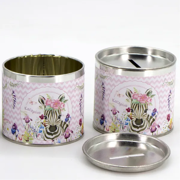Μπομπιονιέρεα µεταλλικό κουτί µε καπάκι κουμπαρά, διαμέτρου Φ7εκ σε δύο ύψη (7εκ & 8,5εκ) και περιμετρικό αυτοκόλλητο με 4χρωμη προσωποποιημένη εκτύπωση.