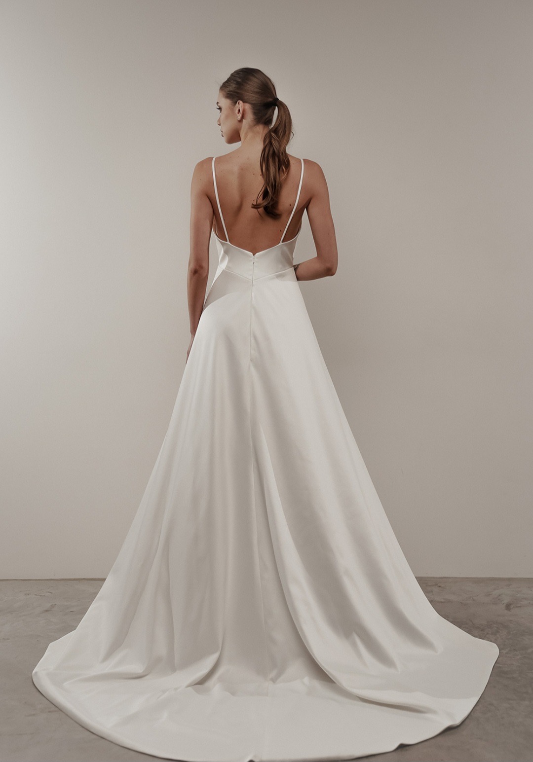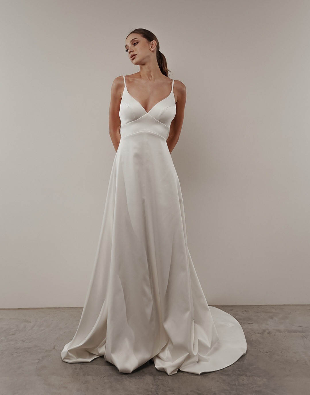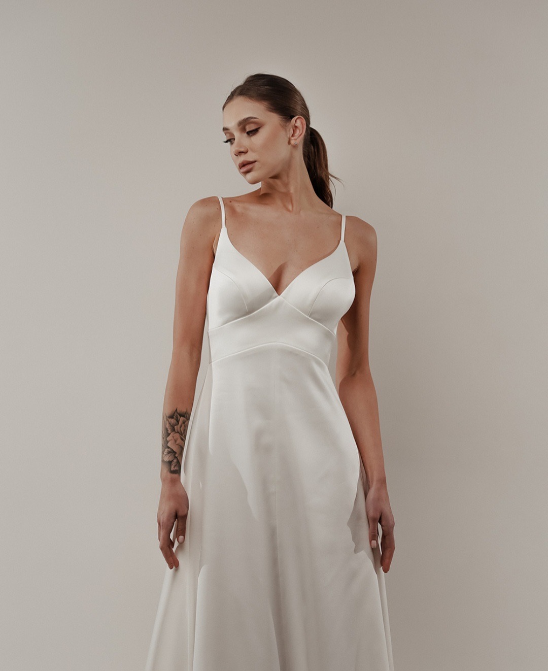Μεταξωτό νυφικό σε Α γραμμή. Ανακαλύψτε το απόλυτο μεταξωτό νυφικό σε Α γραμμή, ιδανικό για νύφες που επιθυμούν κομψότητα, άνεση και διαχρονικό στυλ. Το νυφικό διαθέτει λεπτή ράντα, που αγκαλιάζει διακριτικά τους ώμους, ενώ η ροή του μεταξωτού υφάσματος δημιουργεί ένα ρομαντικό και αέρινο αποτέλεσμα. Ιδανικό για εκκλησιαστικό γάμο, πολιτικό γάμο ή γάμο σε εξωτερικό χώρο, συνδυάζει minimal design με luxury υφή.