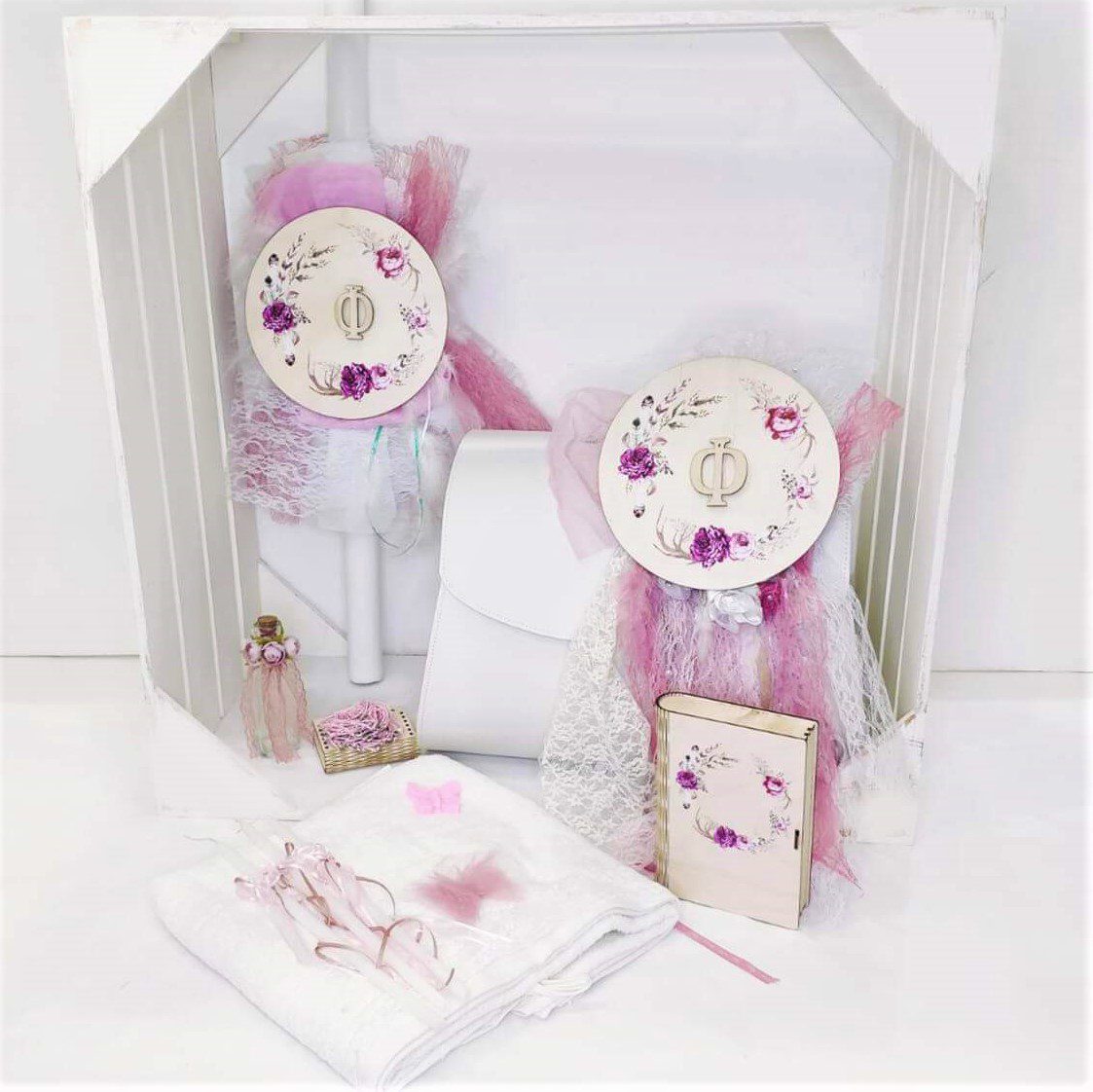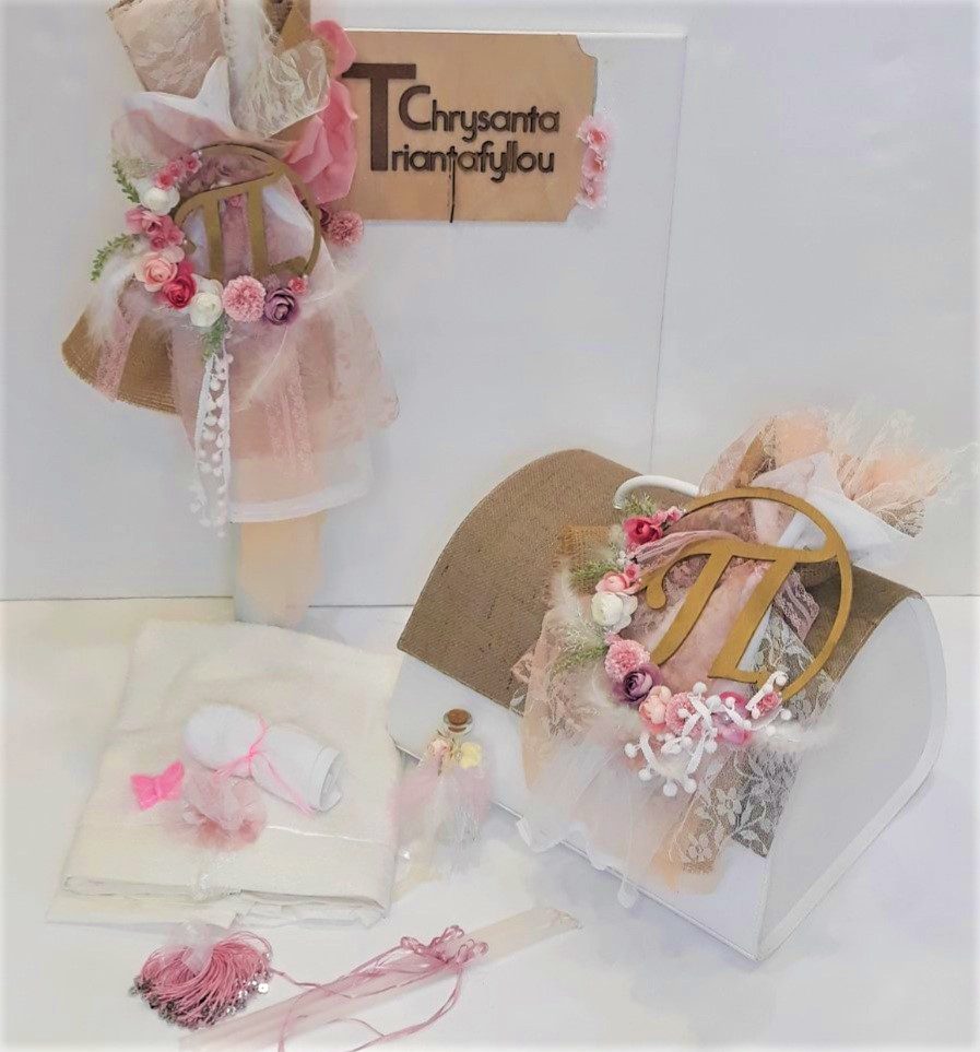 • Πλήρες σετ βάπτισης για κορίτσι με θέμα το μονόγραμμα του ονόματος