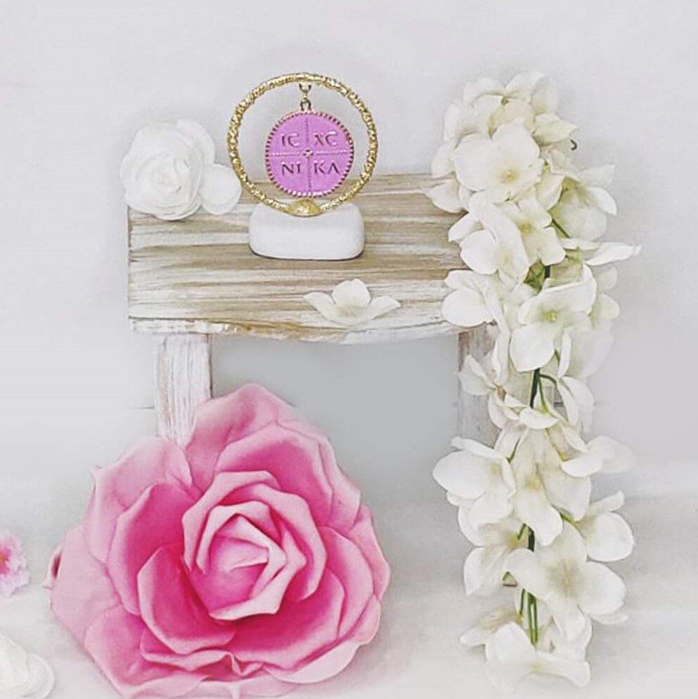 Μπομπονιέρα βάπτισης με λευκό βότσαλο και επίχρυσο διακοσμητικό ροζ Κωνσταντινάτο, με επισμάλτωση. Παραδίδεται δεμένο με κουφέτα. Διαστάσεις ύψος 12εκ. πλάτος 9εκ. Ελάχιστη παραγγελία 20 τεμάχια. Χρόνος παράδοσης έως 20 εργάσιμες.