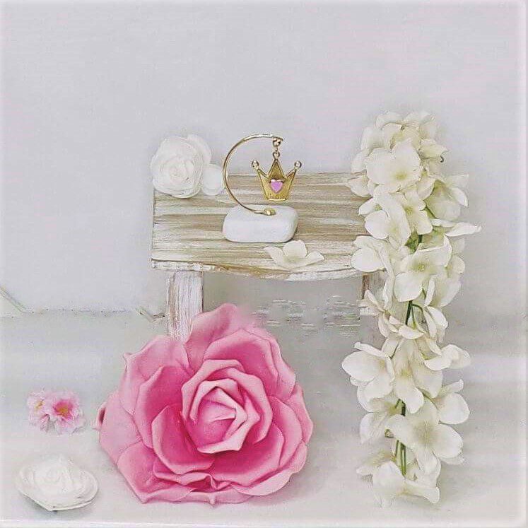Μπομπονιέρα βάπτισης με λευκό βότσαλο και πριγκηπικό στέμμα