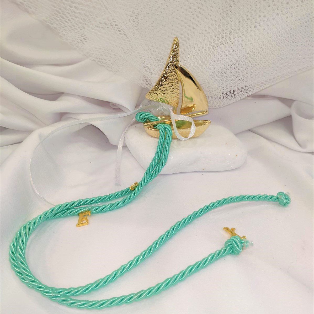 Μπομπονιέρα με λευκό βότσαλο και επιχρυσωμένο με 24 Καράτια διακοσμητικό καραβάκι, με μεταξωτό κορδόνι και Μονογράμματα στις άκρες. Παραδίδεται έτοιμη δεμένη με κουφέτα. Διαστάσεις ύψος 8εκ. πλάτος 7εκ. Ελάχιστη παραγγελία 20 τεμάχια. Χρόνος παράδοσης έως 20 εργάσιμες.