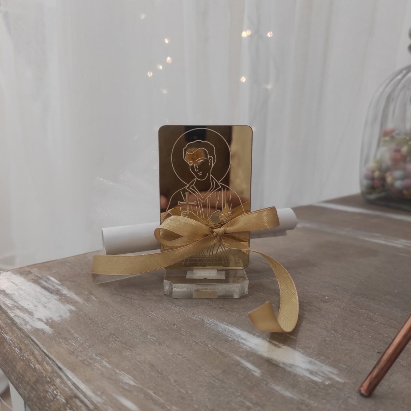 Μπομπονιέρα με χρυσό plexy glass. Επιέγετε εσείς την εικόνα της επιλογής σας.