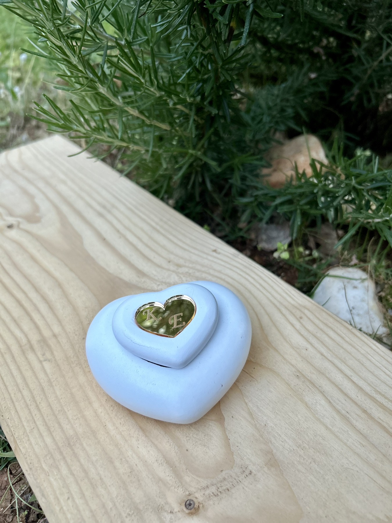 Μπομπονιέρα Μπιζουτιέρα Καρδιά & Αρχικά. Kεραμική μπιζουτιέρα για μοναδικές μπομπονιέρες.