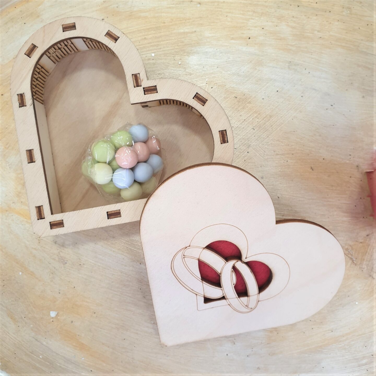 Μπομπονιέρα ξύλινο κουτάκι καρδούλα
