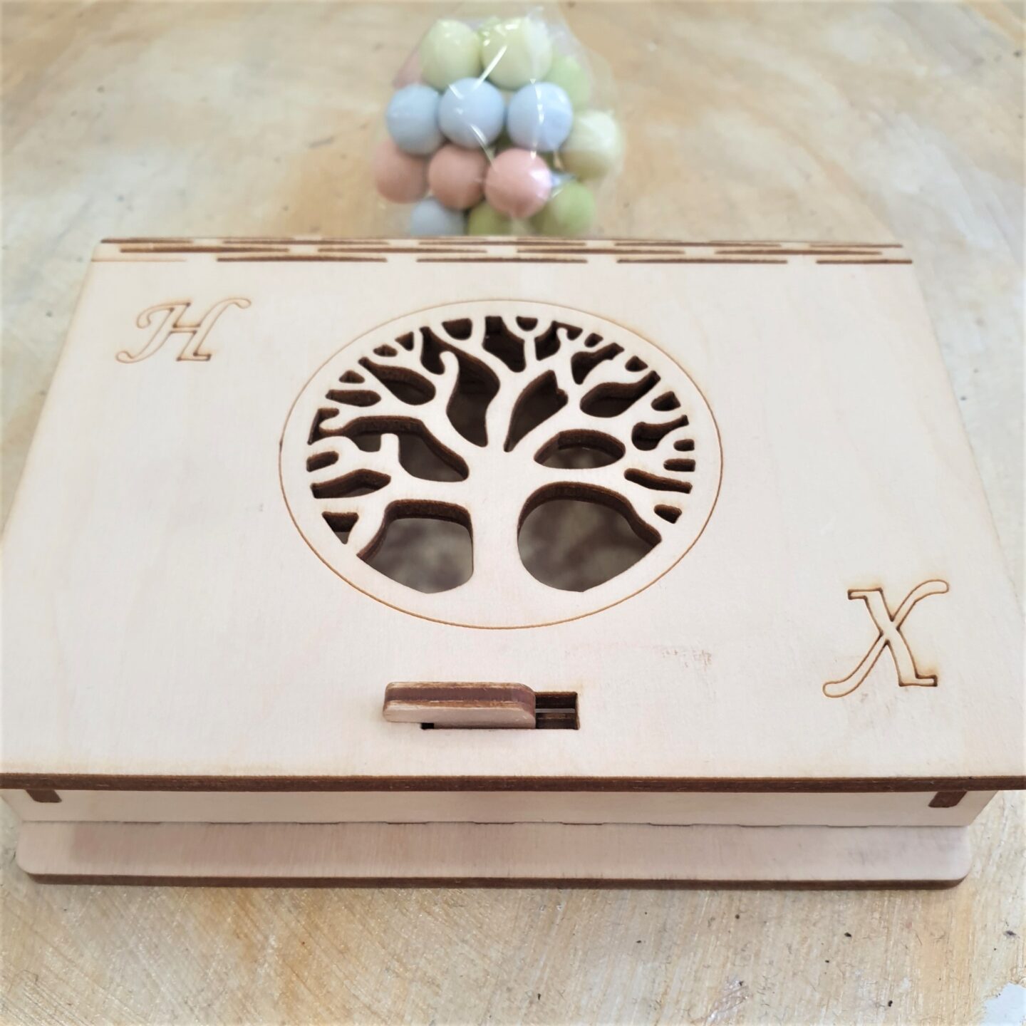 Μπομπονιέρα ξύλινο κουτάκι με κοπή λέιζερ του θέματος της επιλογής σας. Διαστάσεις ύψος 11,5εκ. πλάτος 9 εκ. Ελάχιστη παραγγελία 20 τεμάχια.
