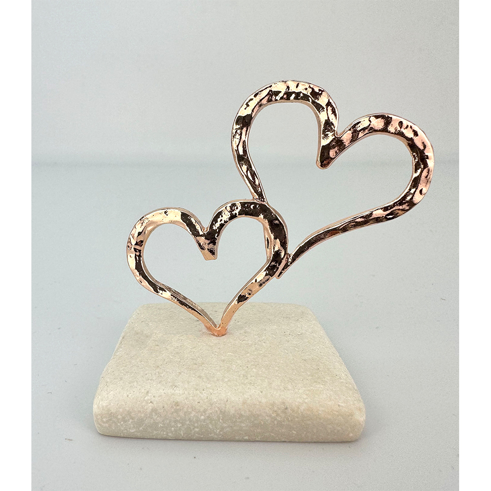 Μπομπονιέρα ροζ χρυσές καρδιές σε βότσαλο. Διαστάσεις : 6,5 x 7.5 cm