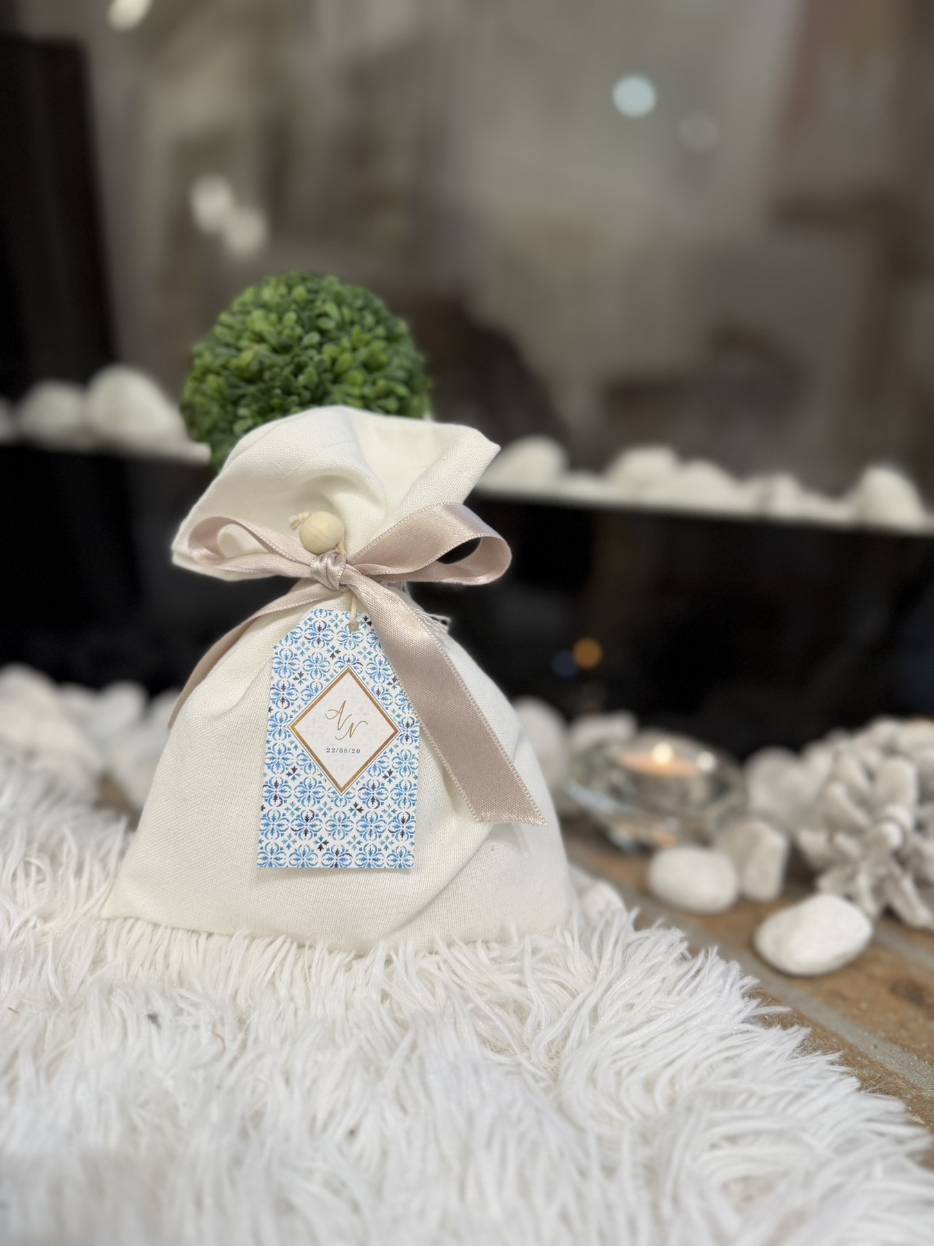 Μπομπονιέρες Βάπτισης – Γάμου Πουγκί με Ευχαριστήριο Καρτελάκι. Η εκτύπωση μπορεί να γίνει σε όποιο θέμα επιθυμείτε. Και την κορδέλα της επιλογής σας.